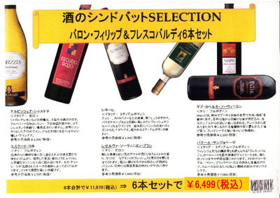 エノテカさん輸入の高品質ワインを6本セットで、さらに【送料込】でお届け!!エノテカ輸入ワイン6本【送料込】セット「バロンフィリップ&フレスコバルディ」 価格: 6,499円 レビュー評価:0.0 レビュー数:0 ☆実店舗でも大人気の「輸入ワイン」6本セット!単品合計価格 ¥11,970 をなんと!!¥6,499(税込)しかも!!【送料込】でお届けします。1本あたり ナント・・・¥1,083という驚きの価格です。数量に限りがございますので、お早めにお求めくださいませ。☆「エノテカ」さんと「酒シンドバッド」のオリジナル商品です。☆エノテカさんは、ワイン業界ではいわずと知れたインポーターさんです。つまり、ワインの品質に関しましては、【超安心】って事です。そんな「エノテカ」さんのワインの中から、当社・ワインアドバイザー「谷口」と、店長「中村」が、(実は、フランスワイン・コンセイエなのです)厳選した6本を驚きの Supported by 楽天ウェブサービス |